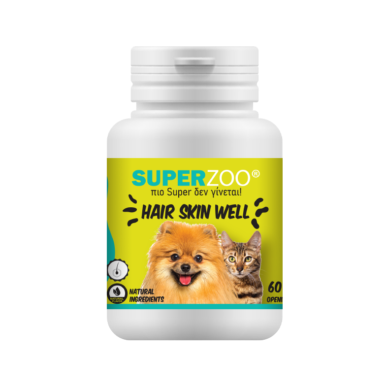 Ποιος δεν θα ήθελε το ζωάκι του να έχει λαμπερό τρίχωμα, απαλό δέρμα και δυνατά νύχια; Τώρα, μπορούν όλα να τα αποκτήσουν με το HAIR SKIN WELL των SUPER ZOO.